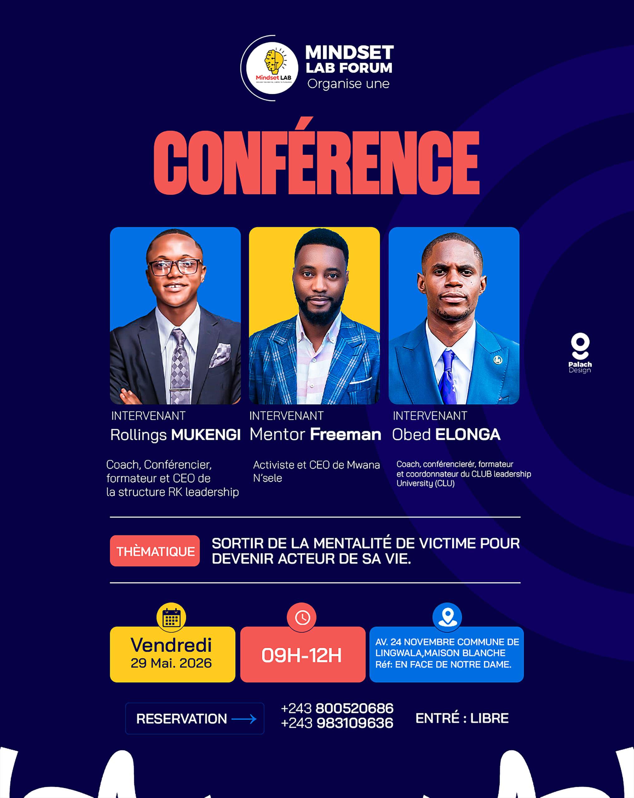 Autour du thème « Sortir de la mentalité de victime pour devenir acteur de sa vie », cette rencontre réunira des intervenants inspirants tels que Rollings Mukengi, Mentor Freeman et Obed Elonga, prêts à partager leurs expériences et motiver le public.
